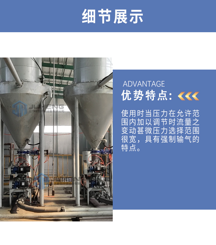 1、正壓輸送系統便于裝設分岔管道,可同時把物料輸送至多出,生產效率高。