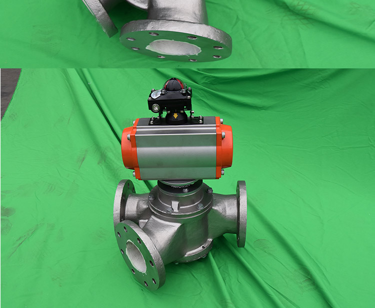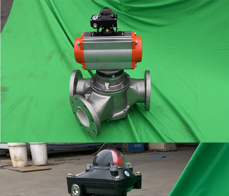 氣動分路閥在輸送系統(tǒng)中起著管路切換的作用,可以改變輸送物料流向的作用,采用旋塞式結(jié)構(gòu),密封可靠,換向靈活。適用于粉料和顆粒物的方向切換。在控制方面,采用氣缸或電動執(zhí)行器帶動旋塞換向,并安裝磁性開關(guān),指示并控制氣缸換向,電磁換向閥控制進、排氣,實現(xiàn)換向。