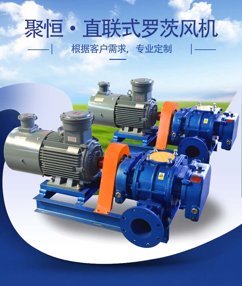 - 直聯傳動羅茨風機,主軸的轉速隨電機的轉速而定,電機轉速固定,則主軸的轉速一定,同一級別的電機,轉速是一定的,不能隨意調節。相對來說,直聯傳動的風機維護需要專業技術人員才操作。在某些行業上因機器設備工作環境的不同,有的羅風機需要在高溫環境運轉,如鋼鐵行業,這類行業上一般會選用直聯傳動的羅茨風機,皮帶傳動的風機因皮帶耐高溫性能較差,容易發生打滑現象,所以在此類工作環境有較高溫度下,皮帶傳動風機引用較少,而直聯傳動羅茨風機應用的較為廣泛。